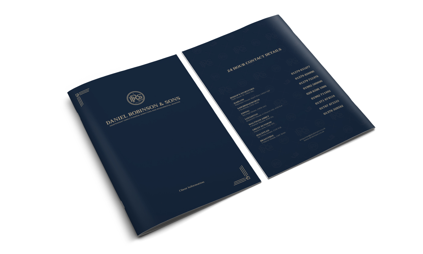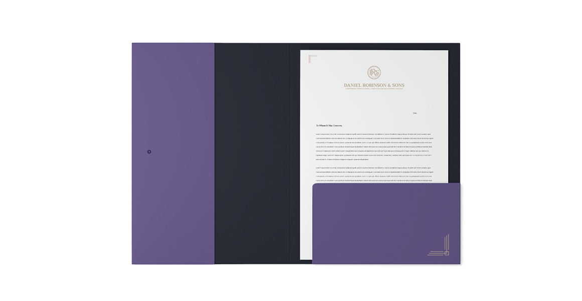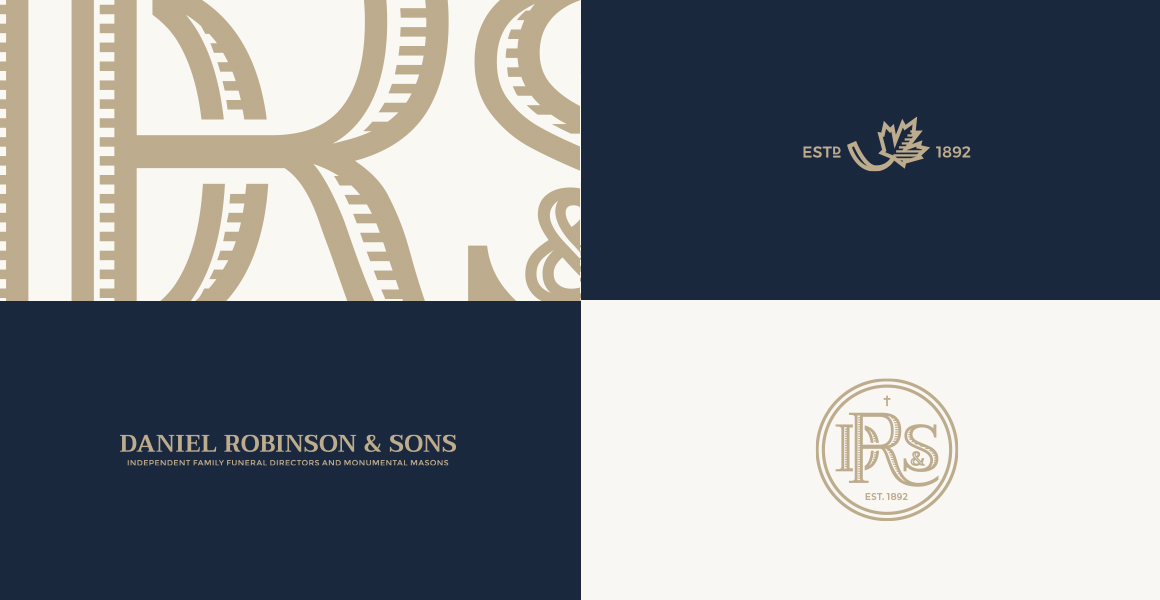 The main goal while designing a new visual identity for Daniel Robinson & Sons was to maintain the current serif-style typography but also to add more graphic elements and stylize existing ones, like the falling leaf icon, so it creates a cohesive and recognisable style.